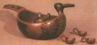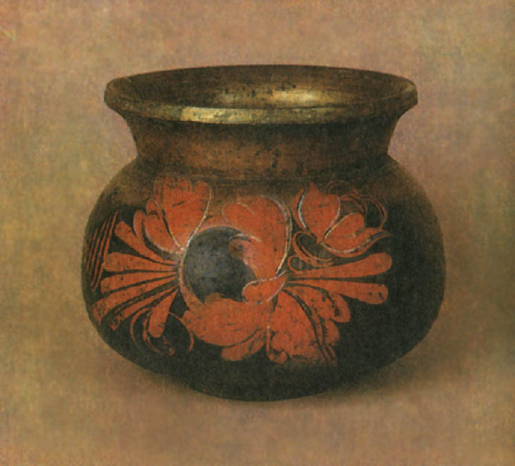 Золотая ХохломаЧашка, сверкающая золотом и киноварью, кажется тяжелой и массивной, но если взять ее в руку, ощутишь легкость дерева. Хохлома — старинное село, затерявшееся в глуши дремучих заволжских лесов. Вместе с его историей уходит в далекое прошлое зарождение там известного на весь мир искусства хохломской росписи. Впервые упоминание об этом селе встречается в документах XVI века. Еще при Иване Грозном о Хохломе знали как о лесном участке под названием «Хохломская Ухожея» (Ухожея — место, расчищенное от леса под пашню). В XVII веке ряд селений вместе с Хохломой перешли во владение Троице-Сергиева монастыря, расположенного недалеко от Москвы (ныне город Загорск). Возможно, уже в это время зародилось в Хохломе производство деревянной золоченой посуды, так как в документах монастыря упоминаются ковши, ложки, поставцы, раскрашенные разноцветными красками и золотом. Деревянная посуда с самых древних времен была у русского человека в большом употреблении: ковши и скобкари в форме плывущей птицы, круглые братины, обеденные миски, ложки разных форм и размеров найдены в археологических раскопках еще X—XIII веков. Есть образцы, которые датируются несколькими тысячелетиями. Но пользоваться неокрашенной деревянной посудой неудобно: древесина впитывает в себя жидкость, быстро загрязняется. Заметили, что промаслившиеся стенки сосудов легче моются, посуда дольше сохраняется. Тогда-то, вероятно, и возникла мысль покрывать посуду олифой — вареным льняным маслом. Олифа покрывала поверхность предмета непроницаемой пленкой. Этот состав, применявшийся иконописцами для предохранения живописи от влаги, был известен русским мастерам с давних пор. Возможно, также в связи с техникой писания икон возникло живописное искусство Хохломы. В целях экономии дорогостоящего золота мастера Древней Руси закрашивали фон иконы серебром. Затем, после окончания живописных работ, покрывали поверхность иконы лаком, приготовленным из льняного масла, и прогревали в печи. Под влиянием высокой температуры пленка лака приобретала золотистый оттенок и просвечивающее сквозь нее серебро тоже отливало золотом. Росписью посуды занимались крестьяне, жившие в деревнях, расположенных вокруг Хохломы: Новопокровское, Сёмино, Хрящи и Кулигино. Первые поселенцы этих деревень, скрытых в густых лесах, были «утеклецами», т. е. беглецами, укрывшимися здесь от гонений за «старую веру», от царского произвола, помещичьего гнета. Среди них были и художники-иконописцы и мастера рукописной миниатюры. Они-то и могли применить технику золоченой окраски при изготовлении посуды. Особенно широкий размах изготовление такой посуды получило в XIX веке: хохломские изделия через Нижегородскую ярмарку расходились по всей России, вывозились в страны Азии и Западной Европы. Они привлекали своей оригинальной раскраской, прекрасной лакировкой, радовали глаз праздничностью расцветки, красотой орнамента. При этом изделия были дешевы и прочны в употреблении: покрывающий их лак был так хорош, что выдерживал высокую температуру. От горячей пищи посуда не меняла цвета, не теряла своей красивой росписи. Как же это достигалось? Техника хохломской окраски связана с горячей обработкой изделий и требует большого опыта и мастерства. Работа эта очень трудоемка. Росписью украшали главным образом разны